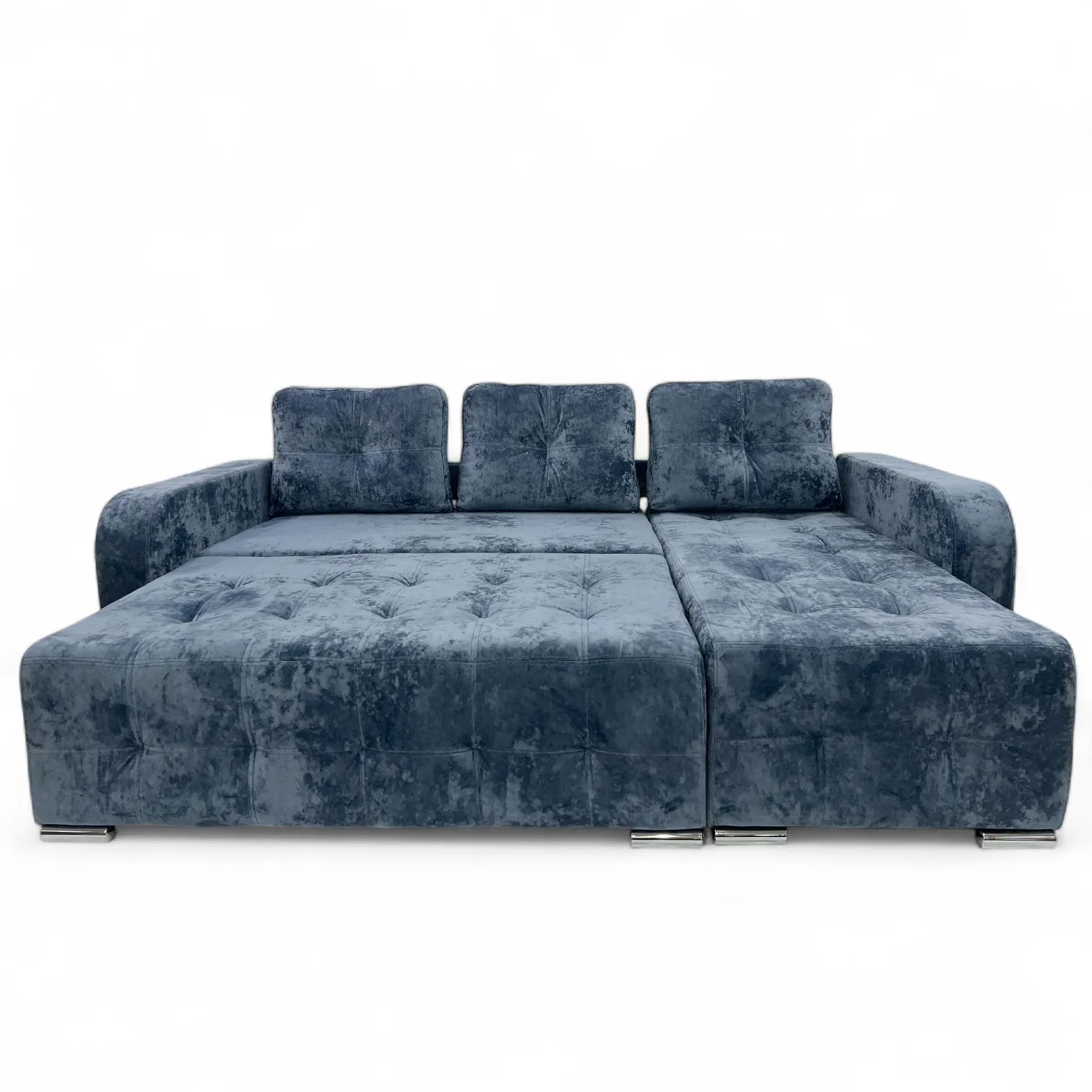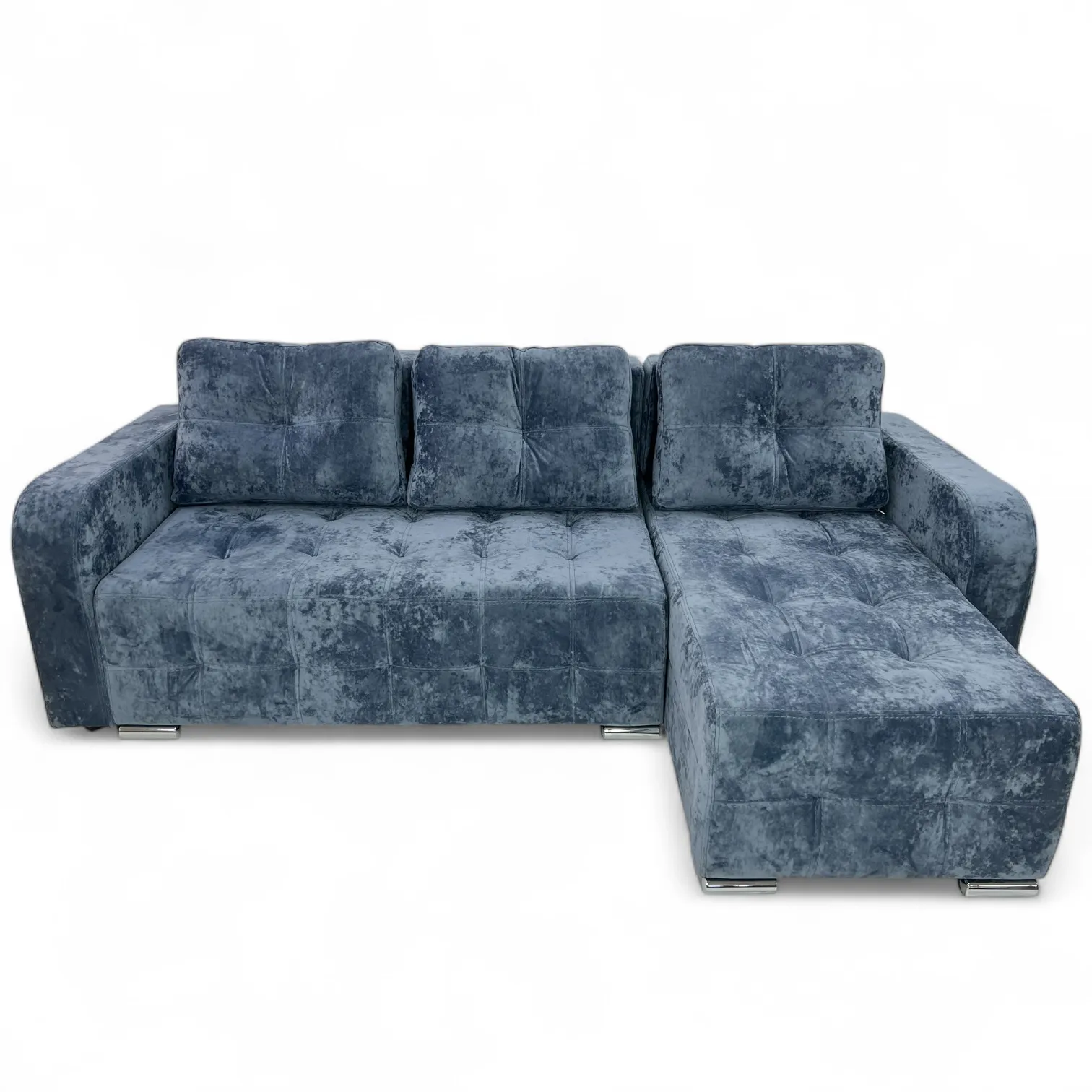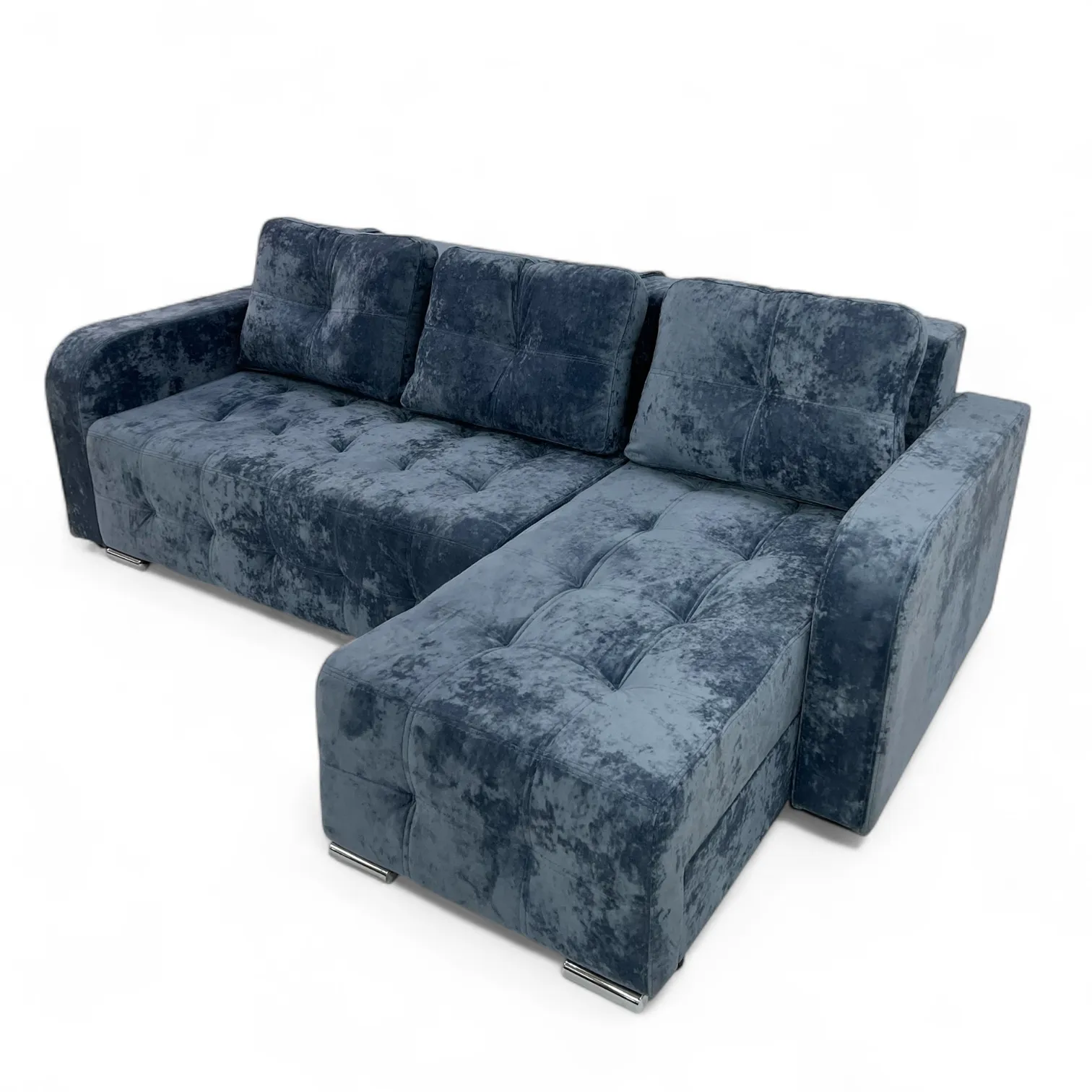 Характеристики: Тип: угловой диван. Длина: 2450 мм. Глубина: 1600 мм. Высота сидения от пола: 450 мм. Размер спального места: 2100/1600 мм. Ориентация сборки: универсальный. Механизм трансформации: тик-так. Емкость для постельных принадлежностей: есть. Наполнитель сидения: эластичный пенополиуретан; независимый пружинный блок. Материал изготовления каркаса: фанера. Материал ножек: хром. Декоративная прошивка: есть. Количество подушек: 3 шт.