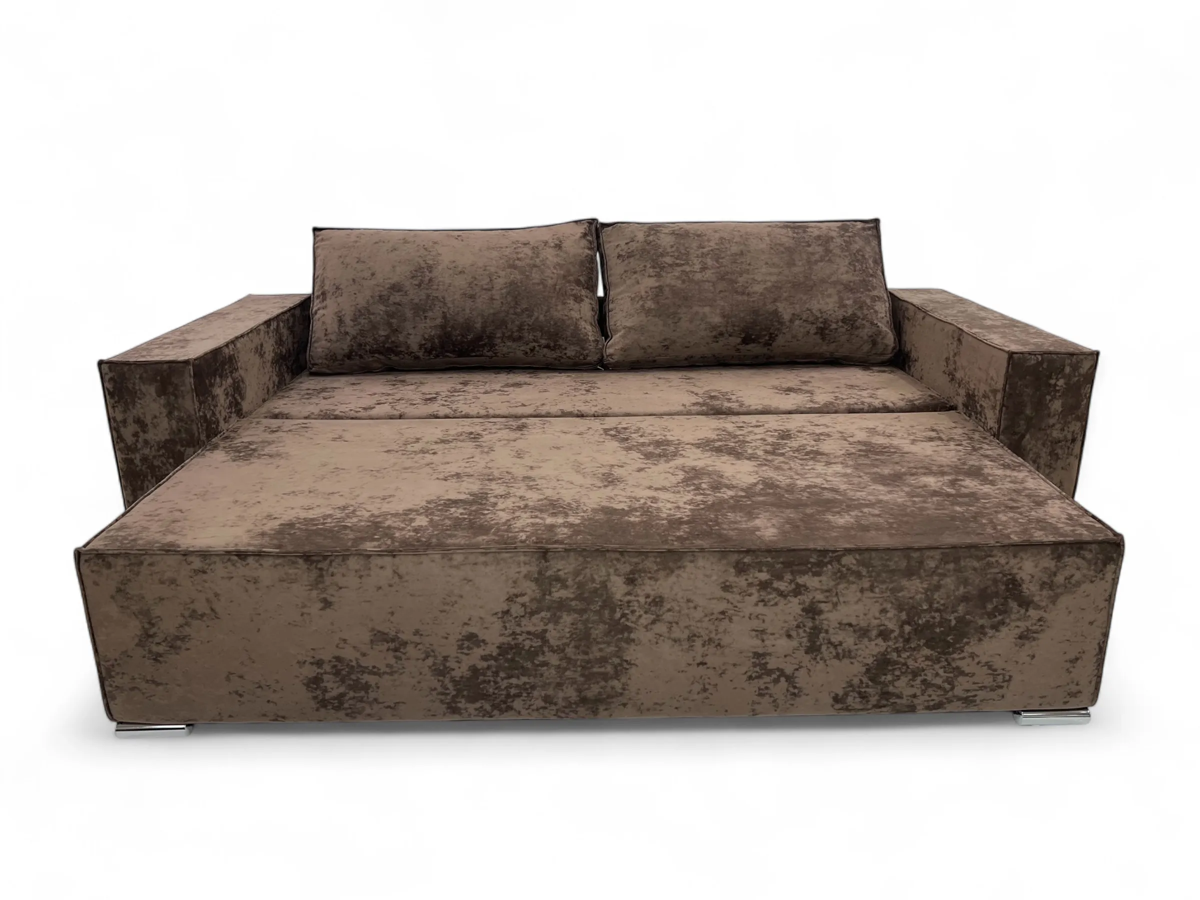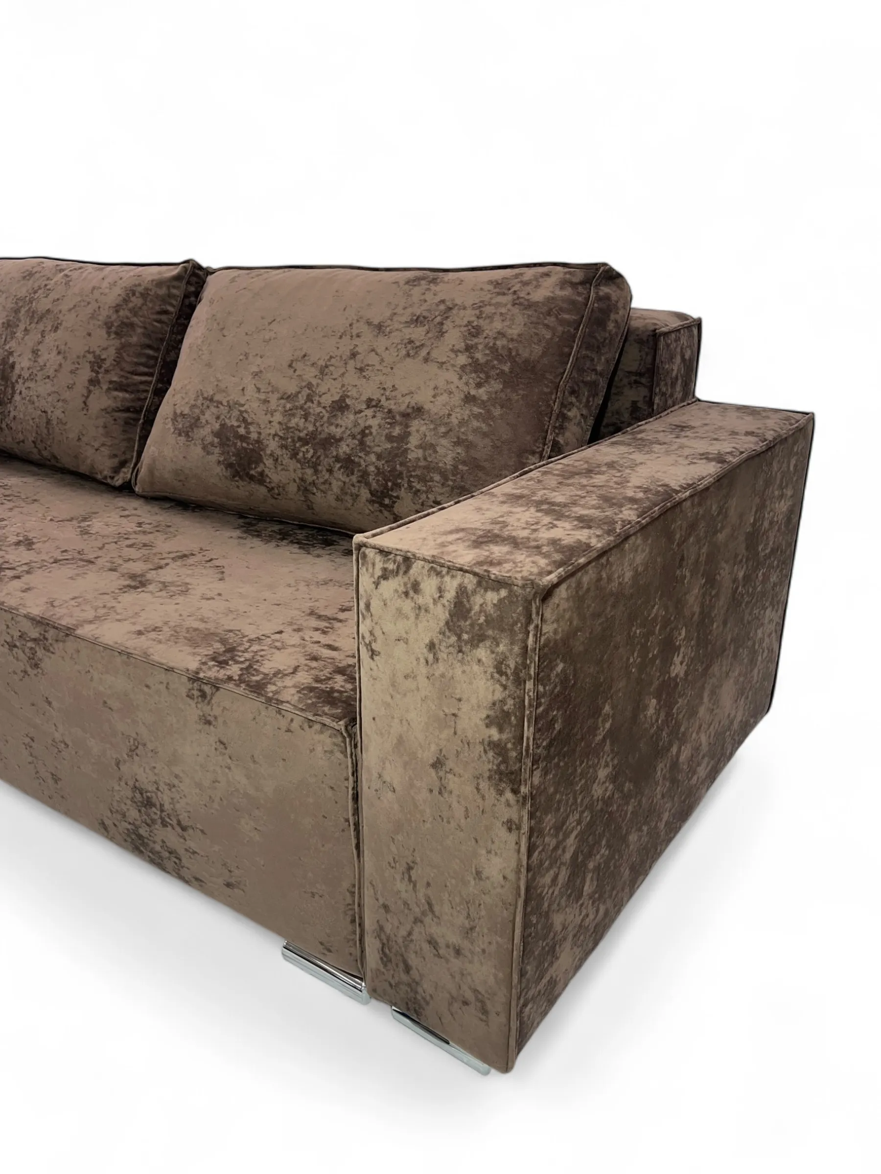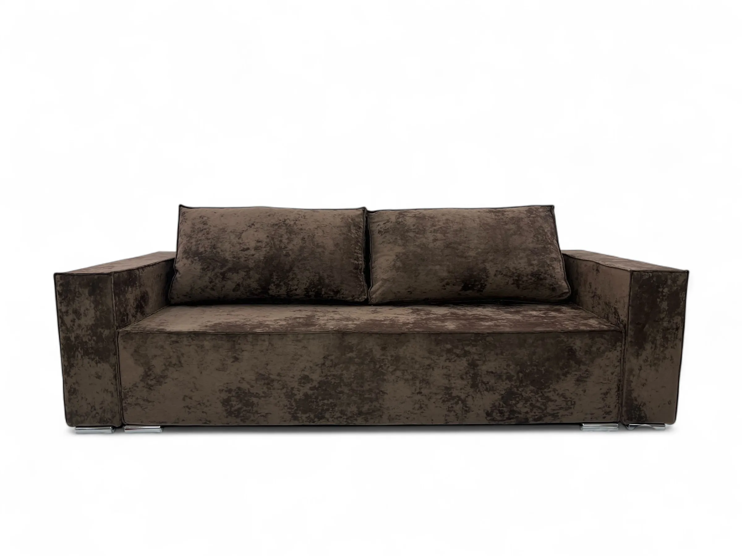 Характеристики: Тип: прямой диван. Длина: 2500 мм. Глубина: 1050 мм. Высота сидения от пола: 460 мм. Размер спального места: 2000/1600 мм. Механизм трансформации: тик-так. Емкость для постельных принадлежностей: есть. Наполнитель сидения: эластичный пенополиуретан; независимый пружинный блок. Материал изготовления каркаса: фанера. Материал ножек: хром. Декоративная прошивка: нет. Количество подушек: 2 шт.