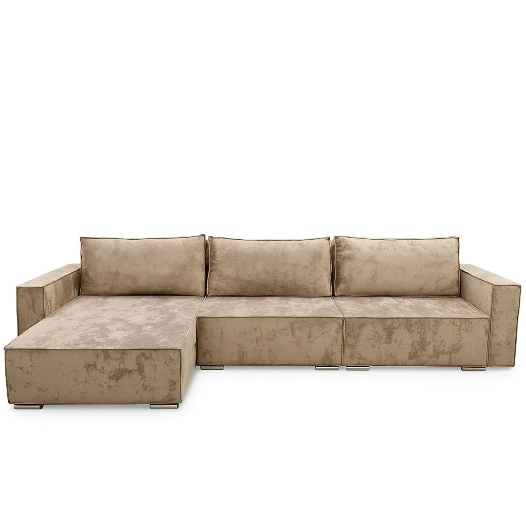 Характеристики: Тип: угловой диван. Длина: 3500 мм. Глубина: 1650 мм. Высота сидения от пола: 450 мм. Размер спального места: 3000/1600 мм. Ориентация сборки: универсальный. Механизм трансформации: тик-так. Емкость для постельных принадлежностей: есть. Наполнитель сидения: эластичный пенополиуретан; независимый пружинный блок. Материал изготовления каркаса: фанера. Материал ножек: хром. Декоративная прошивка: есть. Количество подушек: 3 шт.