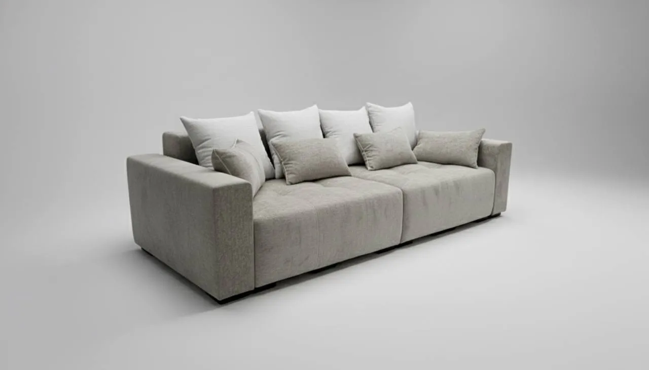 Характеристики: Тип: угловой диван. Длина: 2900 мм. Глубина: 1200 мм. Высота сидения от пола: 450 мм. Размер спального места: 1900/2400 мм. Ориентация сборки: универсальный. Механизм трансформации: тик-так. Емкость для постельных принадлежностей: есть. Наполнитель сидения: эластичный пенополиуретан; независимый пружинный блок. Материал изготовления каркаса: фанера. Материал ножек: хром. Ткань: возможно изготовление в любой ткани и расцветке. Декоративная прошивка: есть. Количество подушек: 8 шт.