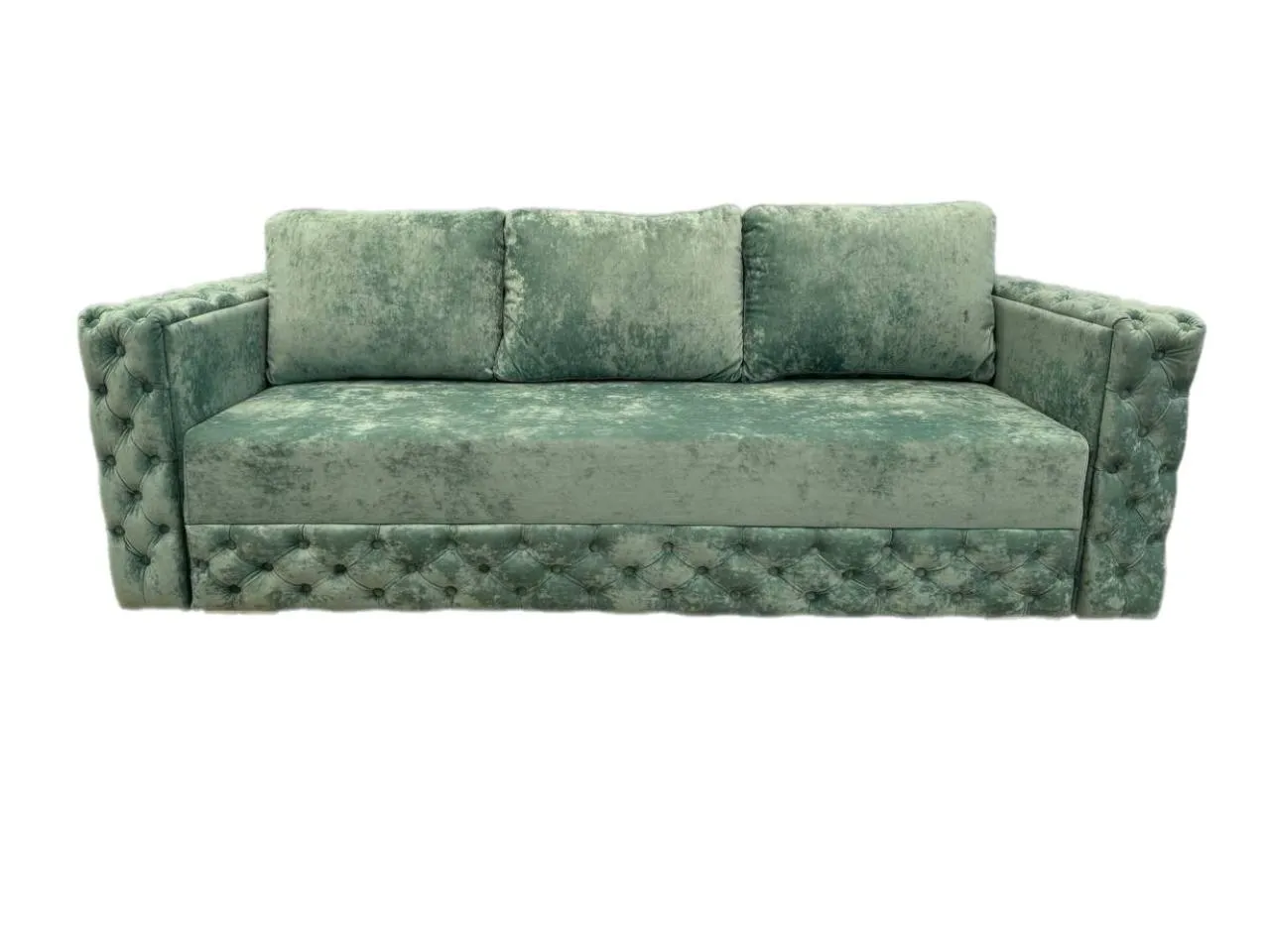 Характеристики: Тип: угловой диван. Длина: 2250 мм. Глубина: 1050 мм. Высота сидения от пола: 450 мм. Размер спального места: 1900/6000 мм. Ориентация сборки: универсальный. Механизм трансформации: тик-так. Емкость для постельных принадлежностей: есть. Наполнитель сидения: эластичный пенополиуретан; независимый пружинный блок. Материал изготовления каркаса: фанера. Материал ножек: хром. Ткань: возможно изготовление в любой ткани и расцветке. Декоративная прошивка: есть. Количество подушек: 3 шт.